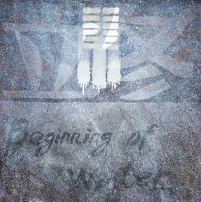 以《心經》《金剛經》及《易經》為核心,畫布底層以細砂浮雕陰刻經文,隨光影流轉而若隱若現,代表東方智慧的潛藏。其上層則以西洋美學的繪畫語彙,結合獨創的「雨水皴」技法繪製鋪陳。作品呈現東西方的會萃,陰陽交融、乾坤互動,寓意從無常中窺見智慧,從有限與具象中觸及無限的宇宙奧義。